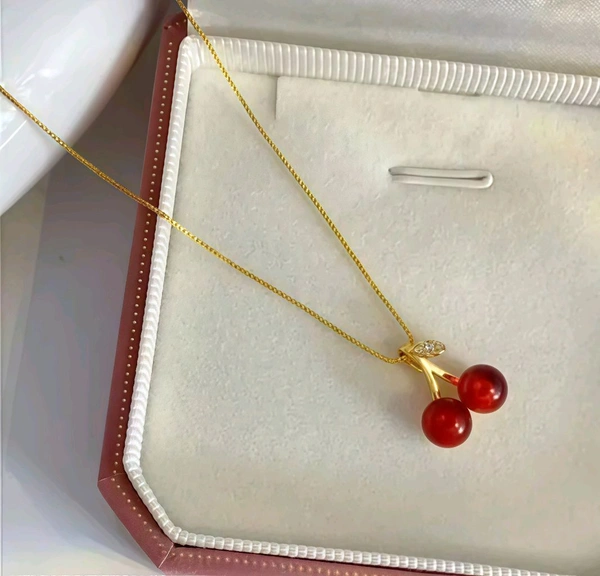 Gold Plated Cherry Pendant Necklace for Women & Girls